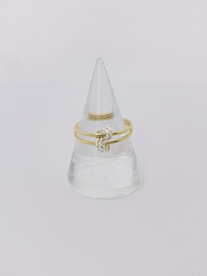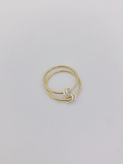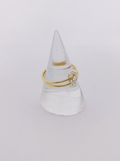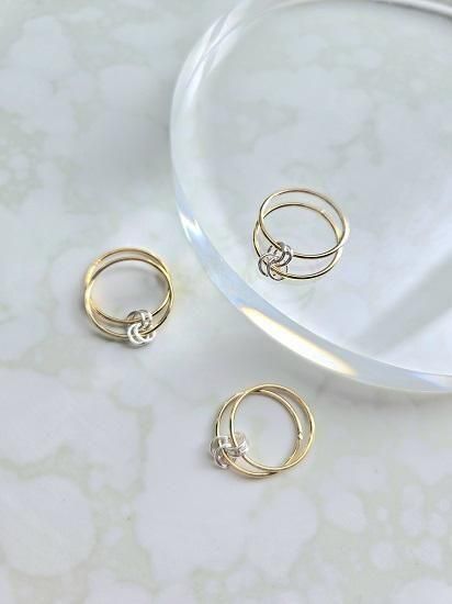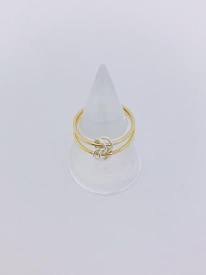 ゴールドのリングにシルバーのリングモチーフがアクセント。